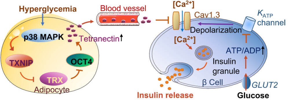 该研究首次确定了Tetranectin是脂肪分泌抑制胰岛素产生的重要调控因子,揭示了肥胖/高血糖情况下脂肪细胞与β细胞交互作用的一个全新机制,为糖尿病治疗提供了新思路。