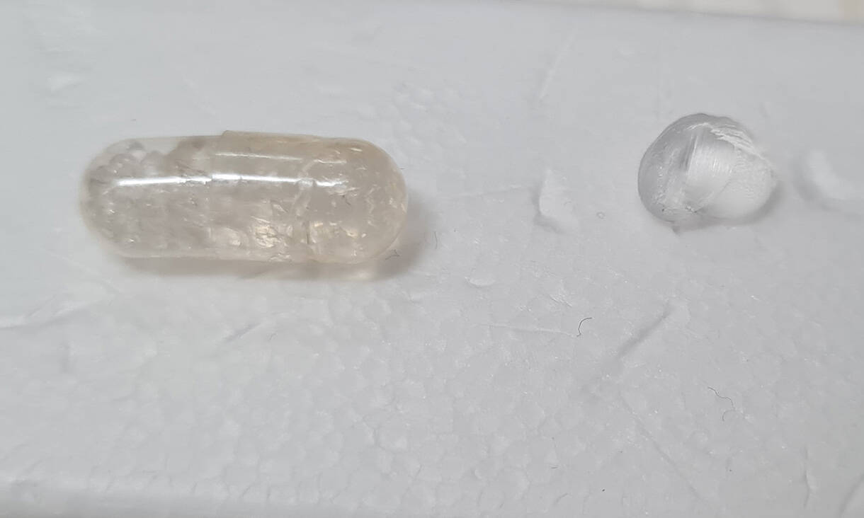 RMIT团队设计的口服胶囊,胶囊内充满胰岛素的脂肪纳米材料(图片来源:皇家墨尔本理工大学)