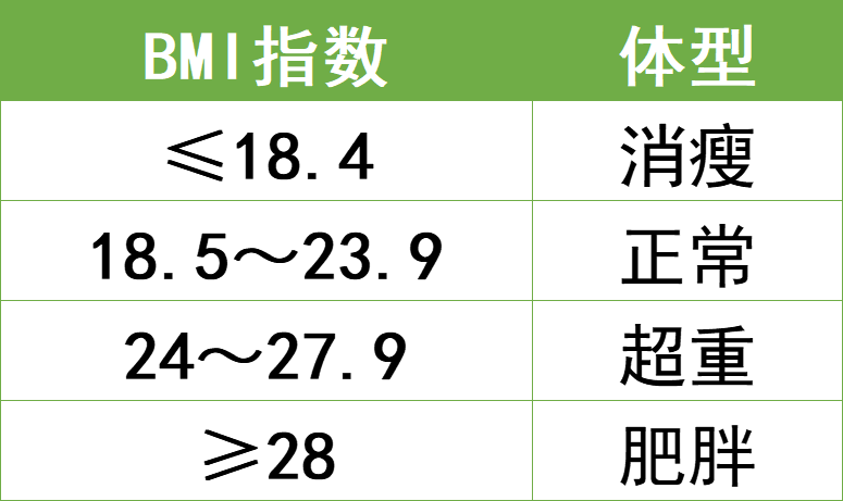 体质指数(BMI)=实际体重(KG)/身高㎡